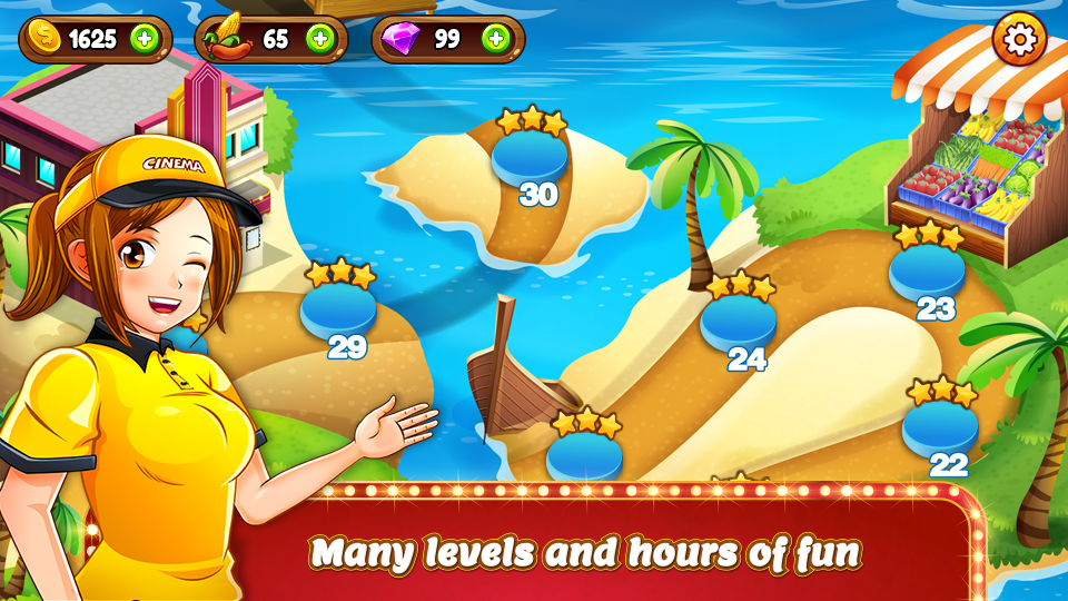 Cinema Panic 2: Cooking Quest is a cooking game that takes you on a culinary journey with your favorite characters. In this game, you will be responsible for serving delicious dishes to customers and managing your restaurant efficiently. You will face various challenges that will test your cooking skills and speed as you try to satisfy your customers’ cravings. Are you ready to become the chef of your dreams and create mouth-watering dishes? The game offers 60 exciting levels that will keep you engaged in the world of Cinema Panic 2: Cooking Quest where you can enjoy cooking and serving delicious meals to your customers while having fun!
