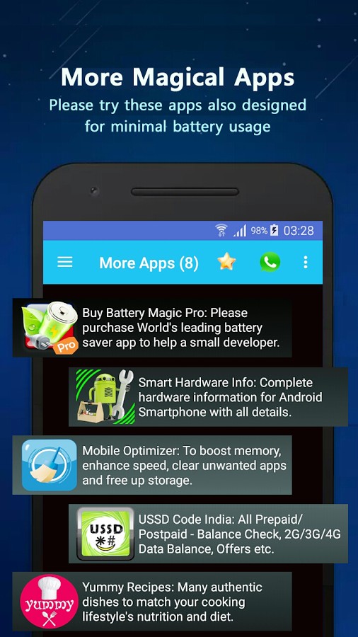 Algunas de las características y capacidades de la aplicación Battery Magic Pro para Android: