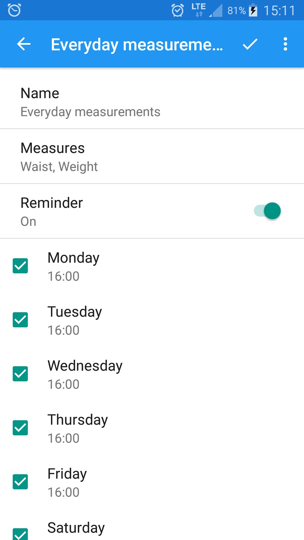 Algunas de las características y capacidades de la aplicación Body measurements – weight, BMI, waist, fat, pulse para Android: