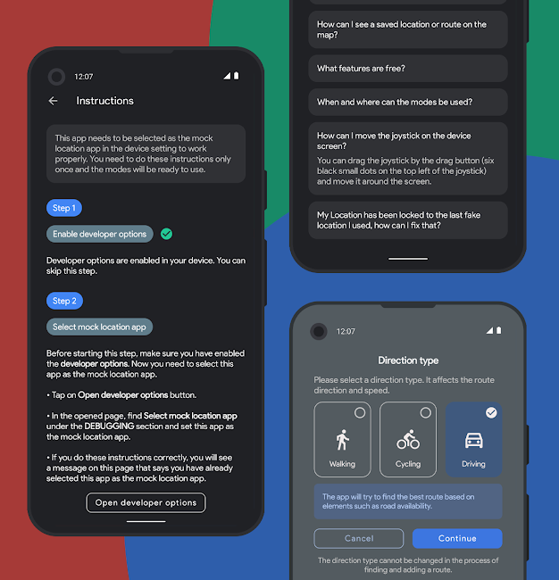 Algunas de las características y funciones de la aplicación Fake GPS Location en Android:
