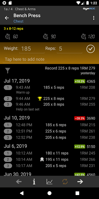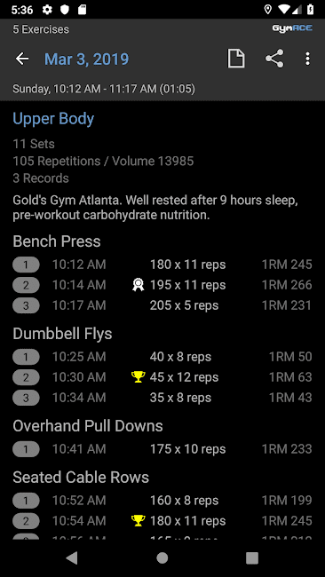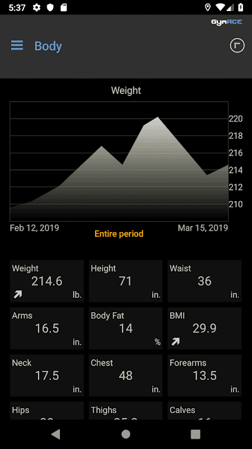 Algunas de las características y funcionalidades de la aplicación GymACE Pro: Workout & Body Log en Android: