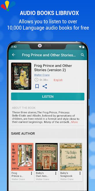 La aplicación LibriVox AudioBooks: Escucha libros de audio gratis es una herramienta muy útil para los estudiantes de idiomas, ya que proporciona el texto del libro junto con su lectura en audio, lo que puede ayudar mucho a los estudiantes en el aprendizaje de la lectura y escucha del idioma. Esta aplicación ha obtenido una calificación de 4.3 de 5.0 de los usuarios de Android en Google Play. Ahora puedes obtener la versión premium de esta aplicación con todas sus características y funcionalidades de forma completamente gratuita en Apkopia.