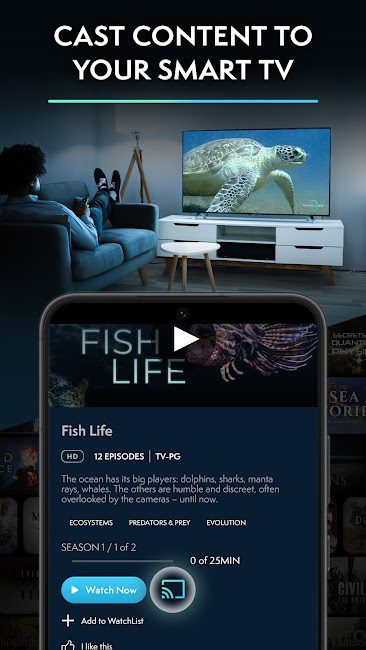 - Posibilidad de transmitir documentales a televisores inteligentes y dispositivos receptores como Chromecast, etc.