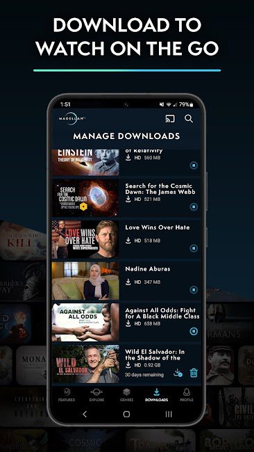 Algunas características y funcionalidades de la aplicación MagellanTV Documentaries para Android: