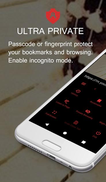 Algunas características y capacidades de la aplicación Surfy Browser – Best UI, AdBlock, Text-to-Speech para Android:
