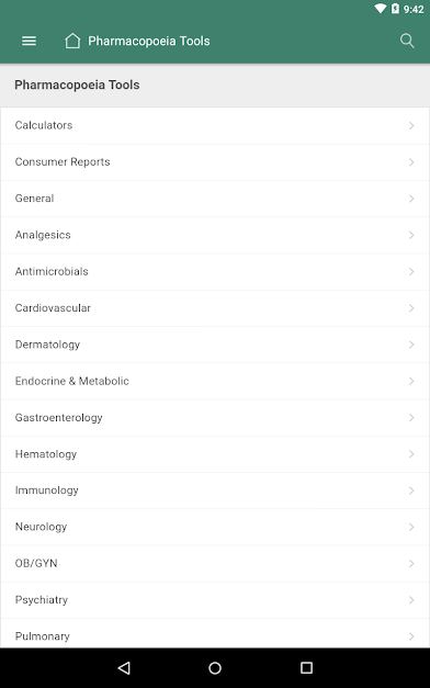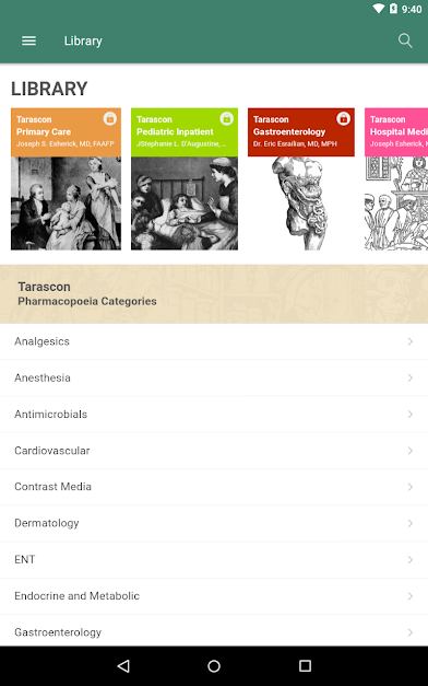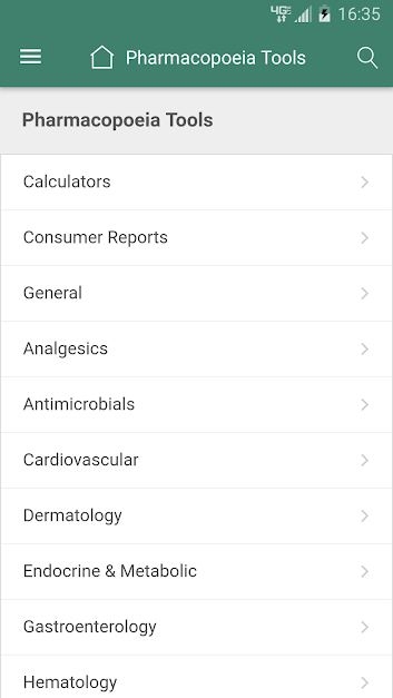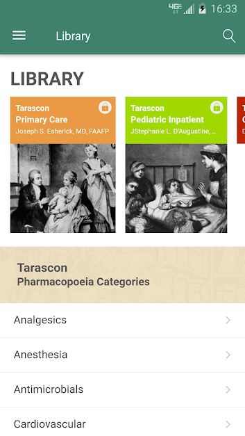 Algunas características y funcionalidades de la aplicación Tarascon Pharmacopoeia para Android: