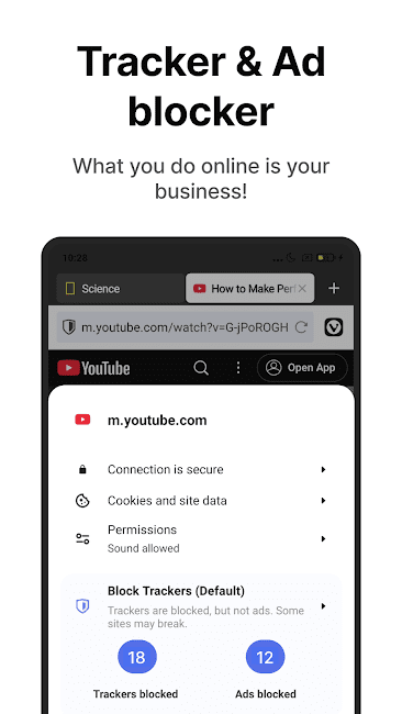 Algunas características y funciones de la aplicación Vivaldi Browser para Android: