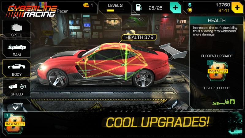 사이버라인 레이싱 안드로이드 게임의 일부 기능: