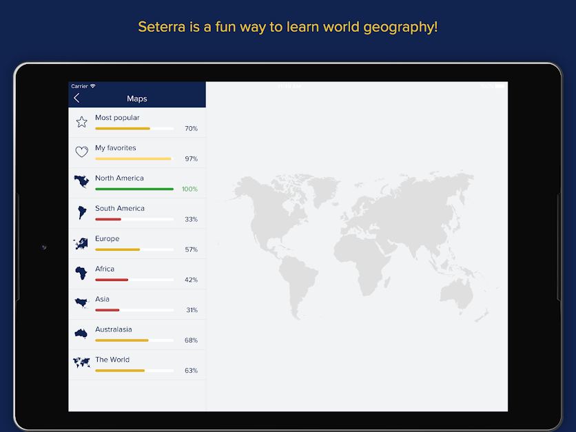 일부 기능 및 기능들Seterra 지리안드로이드앱: