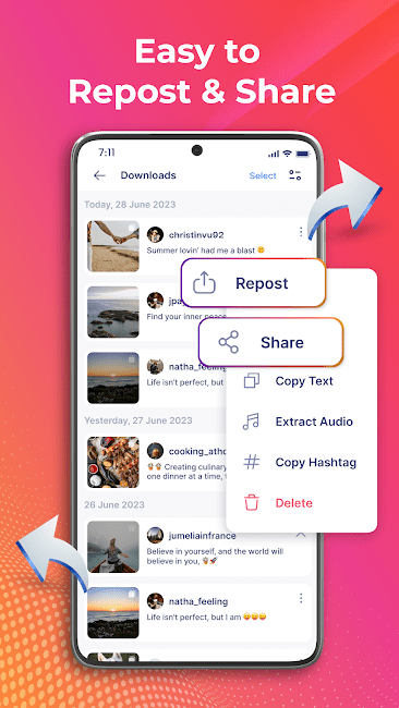 이 애플리케이션은 다양한 소셜 미디어 플랫폼에서 비디오를 다운로드하고 스토리를 저장할 수 있도록 도와줍니다. 고화질로 비디오와 스토리를 쉽게 다운로드하고 오프라인으로 즐길 수 있습니다. 또한 좋아하는 비디오를 친구 및 가족과 공유할 수 있습니다. 이 앱은 사용자 친화적으로 설계되어 콘텐츠를 다운로드하고 저장하는 원활한 경험을 제공합니다. 이 앱은 완전히 무료이며 경험을 향상시키기 위한 다양한 기능을 제공합니다. 지금 다운로드하고 최고의 비디오 및 스토리 저장기 앱을 즐기세요!