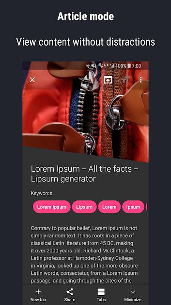 This browser is designed to help you with your browsing needs and make it easier for you to access the web. It offers various features that enhance your browsing experience, including the ability to open links in custom tabs and manage your bookmarks effectively. With its user-friendly interface, you can easily navigate the web and find what you are looking for. The latest version comes with improved performance and new features that make browsing even more enjoyable. You will find it easy to use and very efficient for your daily browsing tasks. It is designed to be fast and responsive, allowing you to browse the web without any interruptions. You can customize your browsing experience to suit your needs and preferences, making it the perfect choice for anyone looking for a better way to browse the internet. Lynket Browser (previously Chromer) is your go-to browser for a seamless browsing experience.
