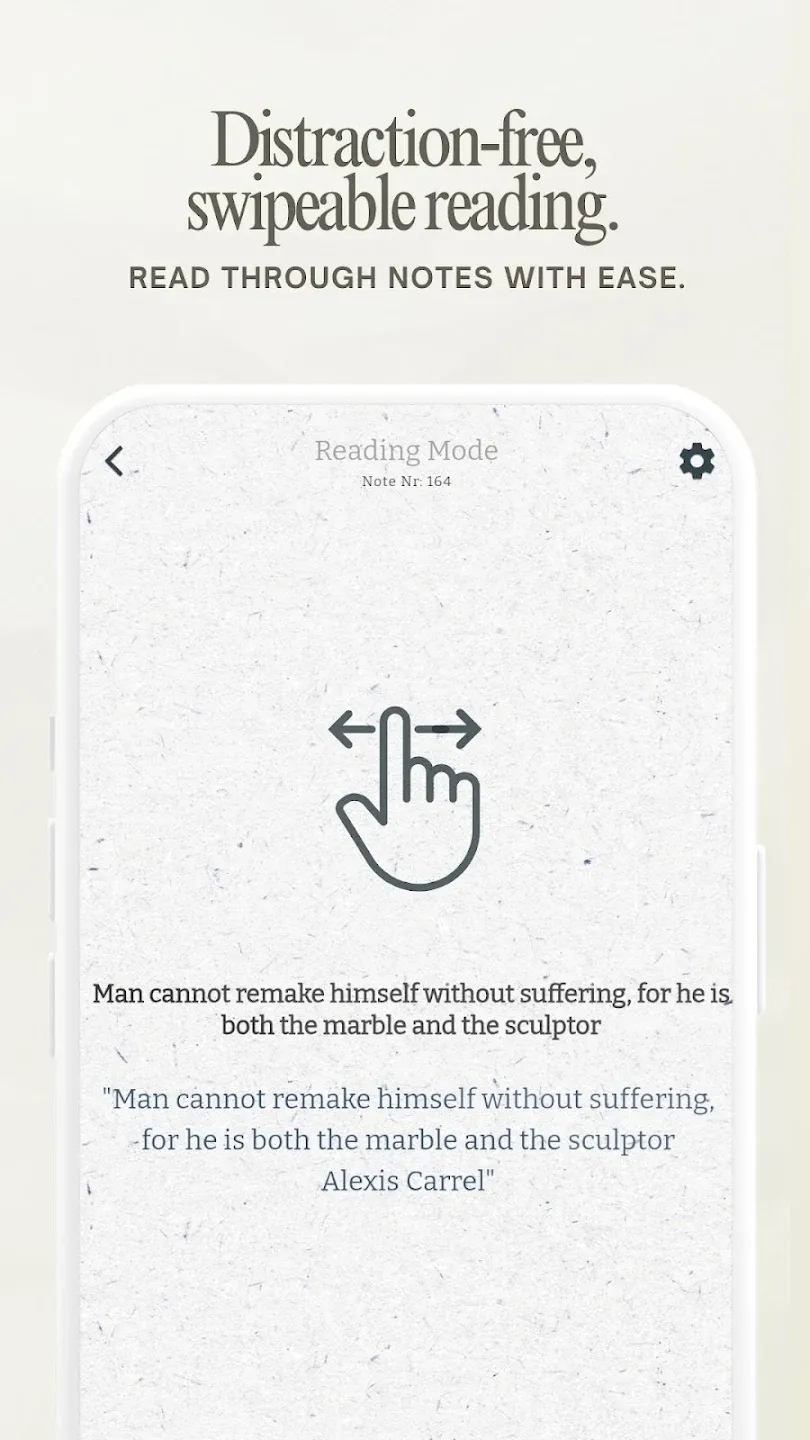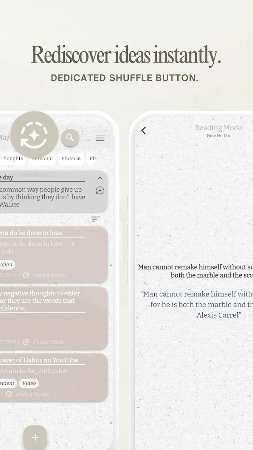 • Shuffle feature that allows you to randomize your notes for different perspectives.