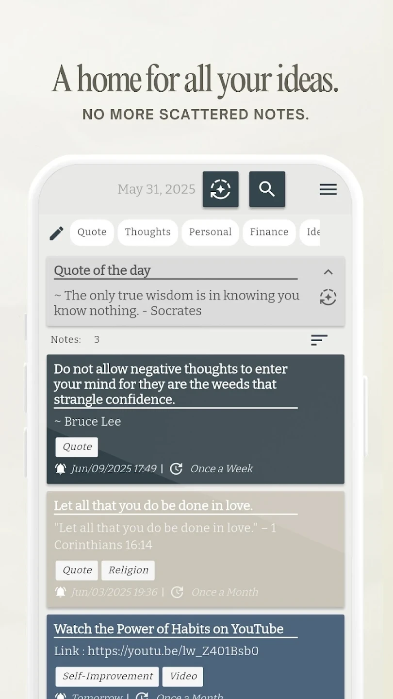 • Provides a simple yet effective way to manage your thoughts and ideas.