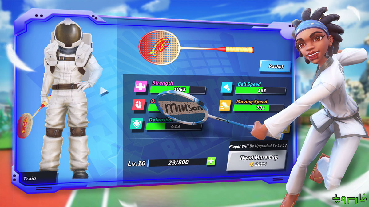 Badminton Blitz — Ракетка Бадминтон — популярная и увлекательная игра в жанре спортивных игр от студии 707 INTERACTIVE для Android, которая была бесплатно выпущена и на данный момент была загружена более 1 миллиона раз пользователей Android со всего мира, и по вашему запросу ее последняя версия была выпущена для загрузки и доступна вам. Установив эту игру на свой планшет или Android-телефон, вы можете погрузиться в мир соревнований по бадминтону и соревноваться в режиме реального времени с онлайн-игроками со всего мира. Ваши соревнования проходят в формате один на один, и ваш противник может быть из любой страны мира. Ваши соревнования длится 3 минуты, и в этом времени победителем будет тот, кто сможет набрать наибольшее количество очков, поэтому стреляйте мячом в сторону вашего противника с высокой скоростью и наносите ему столько ударов, чтобы получить очки и победить в соревновании. Победа в соревнованиях принесет вам деньги и различные награды, которые вы можете использовать, чтобы купить различные инструменты и новое оборудование, включая ракетку и…. Также есть возможность настраивать персонажа игры, из двух доступных персонажей — мужчины и женщины, которых вы выбрали; каждый из них имеет свою собственную специальную одежду и внешность, которую вы можете настроить с помощью доступных опций по своему желанию. Также есть возможность улучшения основного персонажа игры, увеличения его скорости и силы, и это также делается заработанными деньгами, и нет другого способа заработать деньги, кроме победы в соревнованиях, поэтому вам нужно участвовать в соревнованиях на все сто и довести соревнование до конца с победой. Если вы являетесь поклонником и любителем игр в теннис — бадминтон, то без сомнения Badminton Blitz с трехмерным геймплеем, привлекательной 3D-графикой, захватывающим звуком и в целом отличной работой вызовет ваше внимание и будет стоить того, чтобы его попробовать.