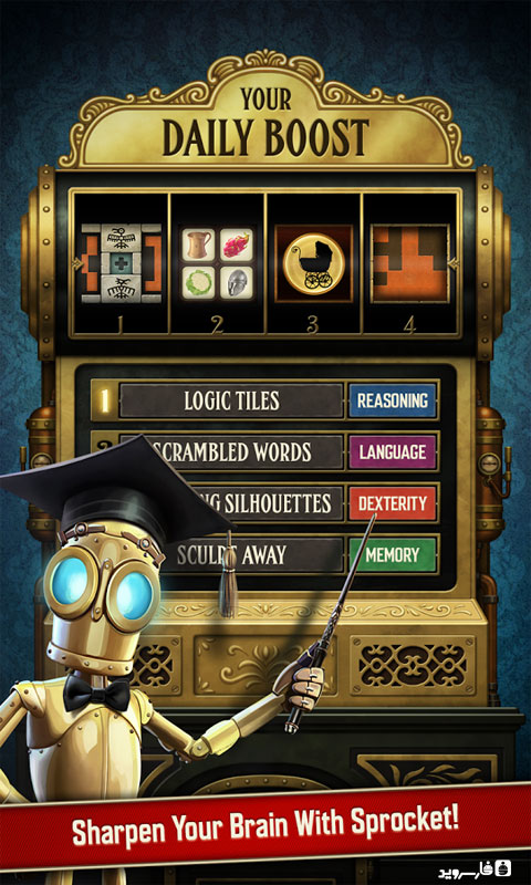 Clockwork Brain — популярная и увлекательная интеллектуальная игра под названием «Механический мозг» от студии Total Eclipse для операционных систем Android, iOS и Windows Phone, которая предлагается бесплатно, и сейчас мы собираемся представить вам версию для Android! Игра Clockwork Brain — Fun Training включает в себя набор увлекательных и разнообразных игр, разработанных для проверки памяти, внимания, логики, навыков, ловкости и языковых навыков! В игре представлено шестнадцать игр, три режима игры и множество усилителей (power-ups) для разблокировки! Геймплей очень удобен и даже когда у вас есть всего несколько минут для игры, эта игра привлекает вас на несколько часов. Если вы любите сложные и интеллектуальные игры, Clockwork Brain может стать отличным дополнением к вашей коллекции игр! Игра начинается с быстрого режима, который со временем открывает два других режима — ежедневный усилитель и тренировка; в процессе игры вам поможет робот по имени Sprocket, который даст вам инструкции перед каждой игрой! Если вы любитель интеллектуальных игр, то без сомнения игра Clockwork Brain с ее разнообразными и красивыми головоломками привлечет ваше внимание!