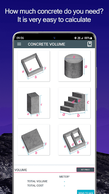 • Получите точные оценки необходимого количества бетона для вашего проекта.