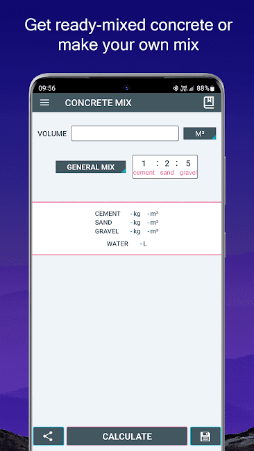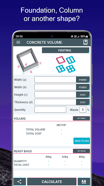 Вот некоторые функции Калькулятора бетона: