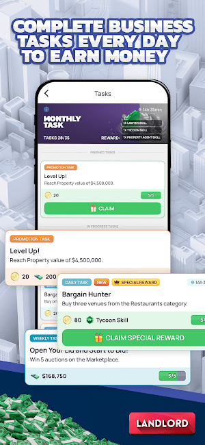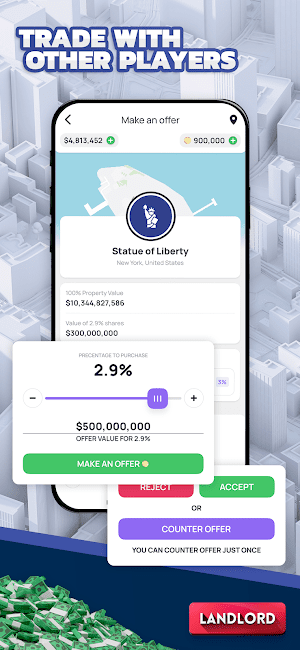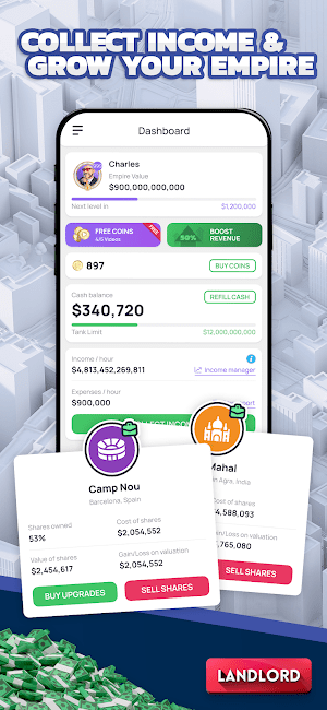 Landlord Tycoon – Миллионер-арендодатель — это очень интересная и отличная игра из категории симуляторов и Tycoon (экономических игр) с элементами кликеров, которая была выпущена бесплатно с возможностью внутриигровых покупок в Google Play. Эта игра под названием LANDLORD Idle Tycoon Business была выпущена студией Reality Games LTD из Великобритании в Google Play. Apkopia по вашему запросу представляет эту игру как протестированную и готовую к загрузке. LANDLORD Idle Tycoon Business является первой официальной игрой компании Reality Games LTD. Следует отметить, что эта игра действительно отличается и является уникальным проектом, представляющим новый стиль экономических игр и Tycoon. В то время как почти все кликеры и Tycoon игры являются оффлайн и одиночными, игра Миллионер-арендодатель является именно обратным. Эта игра — онлайн-симулятор, где игроки со всего мира присутствуют. Со стилем и контекстом, близким к классической игре Monopoly, игра Landlord: Real Estate Tycoon предлагает игрокам уникальный опыт. В этой игре вы играете роль инвестора, который хочет захватить и увеличить свой капитал, покупая и инвестируя в реальную недвижимость в разных частях мира.