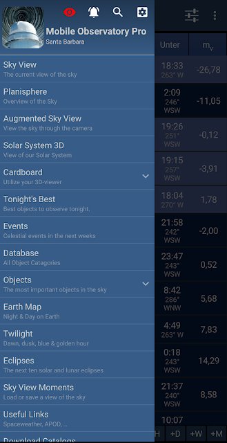 Некоторые функции и возможности программы Mobile Observatory 3 Pro — Astronomy для Android: