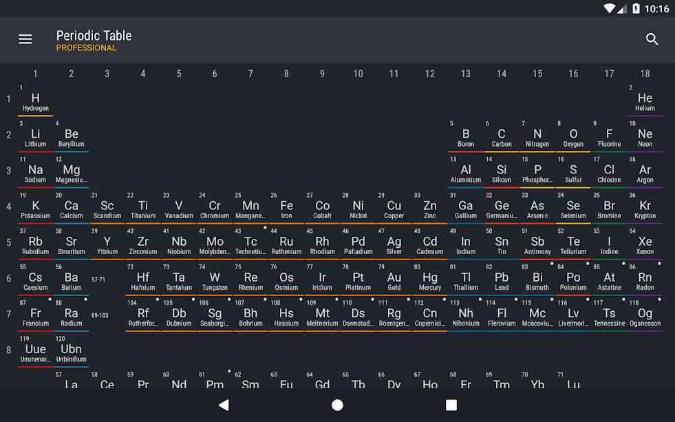 Все предметы, которые нас окружают и которыми мы пользуемся, созданы из различных элементов, каждый из которых имеет свои особые свойства. Все эти элементы классифицируются в науке химии с помощью таблицы, называемой периодической таблицей. В периодической таблице все элементы располагаются в определенном ряду и столбце в зависимости от атомного номера, электронной конфигурации и химических свойств, и обращаясь к ним в этой таблице, мы можем получить конкретную информацию. Периодическая таблица, как и все остальное, подверглась влиянию технологий, и сегодня каждый может легко получить доступ к ее цифровой версии! Periodic Table 2020 Pro — это название полнофункциональной и полной таблицы периодических элементов, разработанной August Software и опубликованной в Google Play. Вам нужно только установить эту стартовую программу и получить доступ к одной из самых полных таблиц периодических элементов 2019 года. Среди самых популярных функций, доступных в этом приложении, можно отметить полную информацию о каждом элементе; достаточно только коснуться нужных вам элементов и получить доступ ко всей информации о них. В отличие от многих других подобных приложений, команда разработчиков постаралась предоставить изображение, сопровождающее каждый элемент, чтобы вы могли легче запомнить материал.