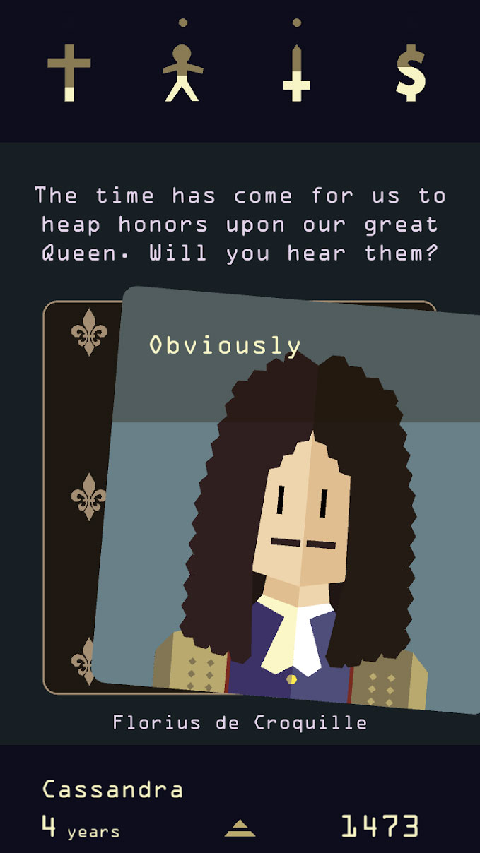 Reigns: Her Majesty v1.0 build 30 Full — карточная игра — фокус на тексте «Власть 2» для Android