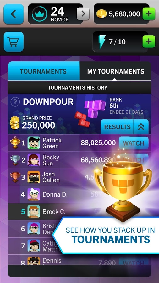 Игра TETRIS Blitz теперь имеет рейтинг 4,2 из 5,0 в Google Play Store. Она была скачана более 10 миллионов раз пользователями Android со всего мира и считается одной из самых популярных игр в категории головоломок. Теперь вы можете скачать одну из двух версий — обычную или модифицированную — прекрасную и любимую игру TETRIS Blitz всего лишь в один клик с Apkopia и провести с ней много времени.