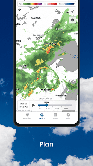 - Показывать различные радары погоды для лучшего понимания будущих условий