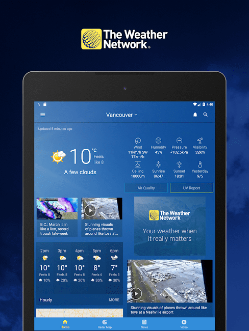 The Weather Network v7.18.1.10368 – Шквалы: местные прогнозы и метеорологические радары