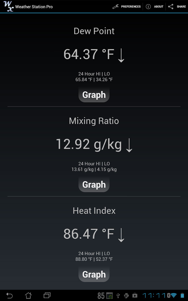 Некоторые из функций, возможностей и особенностей приложения Weather Station Pro для Android: