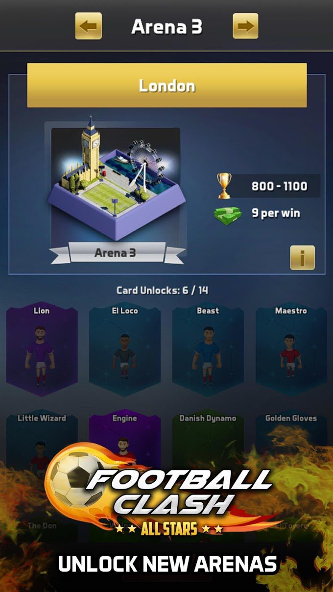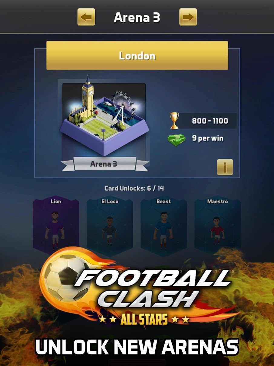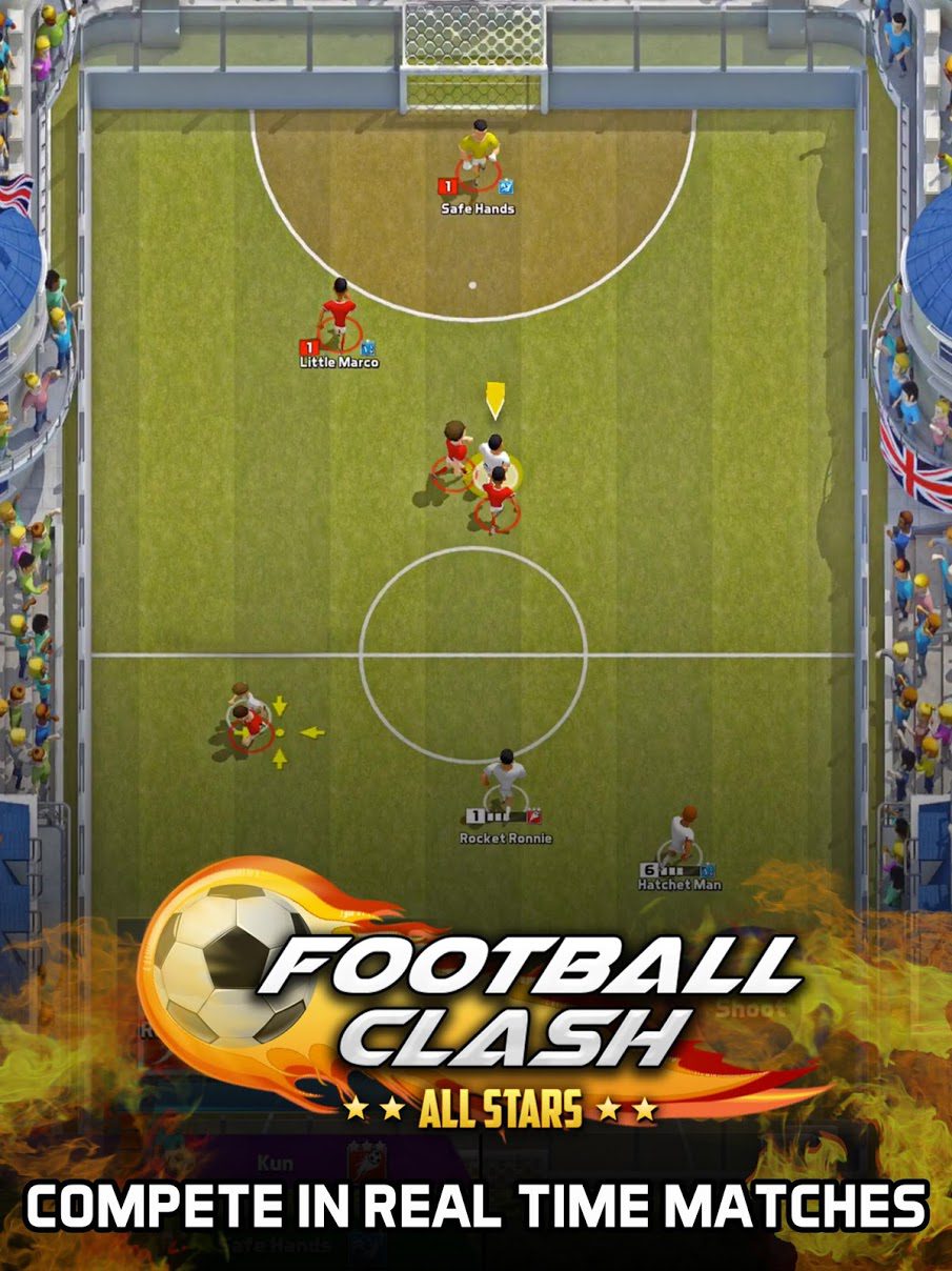 Football Clash: All Stars được dịch sang tiếng Việt là “Football Clash: Tất cả các ngôi sao”, là một trò chơi phổ biến và thú vị thuộc thể loại trò chơi thể thao – bóng đá với lối chơi độc đáo từ Soccer Manager Ltd cho hệ điều hành Android, và phiên bản cập nhật mới nhất đã được phát hành và sẵn sàng để tải về! Trong trò chơi này, giống như các trò chơi cạnh tranh khác, bạn phải cố gắng hết sức để có thể đứng đầu bảng điểm! Có hơn 100 thẻ độc đáo dành riêng cho các cầu thủ, bạn có thể mở chúng một cách tuần tự và sử dụng chúng trong các trận đấu của mình để đánh bại đối thủ! Bạn có thể dễ dàng điều khiển cầu thủ và đội bóng với các điều khiển cảm ứng và có thể ghi nhiều bàn thắng khác nhau để đánh bại đối thủ! Có khả năng tạo ra một giải đấu với người dùng trực tuyến trên toàn thế giới; hãy tạo ra một giải đấu riêng cho bạn và hãy mời bạn bè và người dùng trực tuyến từ khắp nơi để cùng tham gia và làm tăng thêm phần hứng thú! Nếu bạn là người yêu thích và đam mê trò chơi thể thao, không nghi ngờ gì nữa rằng Football Clash: All Stars với thiết kế và xây dựng tuyệt vời cùng với một loạt tính năng hấp dẫn sẽ thu hút sự quan tâm của bạn; như đã thu hút hàng chục nghìn người dùng từ khắp nơi trên thế giới!