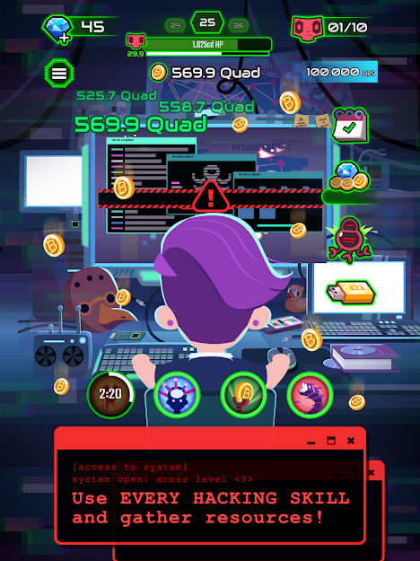 Hacking Hero – Cyber Adventure Clicker v1.0.4 – Trò chơi Clicker và mô phỏng “Anh hùng Hack” cho Android