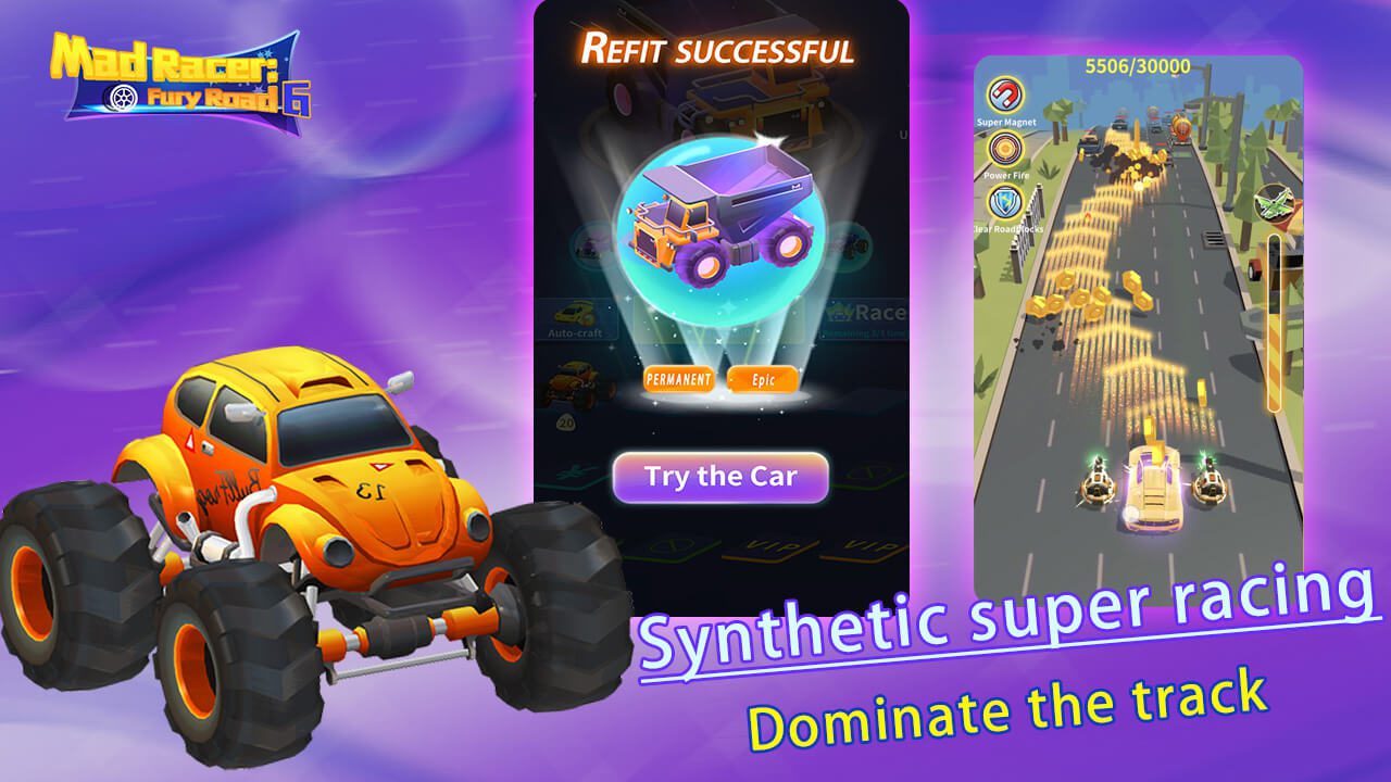 Trong Mad Racer:Fury Road 6, người chơi có thể trải nghiệm sự hồi hộp của việc đua xe qua nhiều môi trường khác nhau, mở khóa những chiếc xe và tính năng mới khi họ tiến bộ trong trò chơi. Trò chơi cung cấp một trải nghiệm đua xe hấp dẫn giữ cho người chơi luôn hứng thú và hào hứng khám phá những thử thách mới. Người chơi có thể tùy chỉnh phương tiện của mình, nâng cấp hiệu suất và cạnh tranh trong nhiều sự kiện đua xe thử thách kỹ năng và phản xạ của họ. Đồ họa rất tuyệt vời, và gameplay rất mượt mà, khiến nó trở thành một trò chơi không thể bỏ qua cho những người đam mê đua xe.