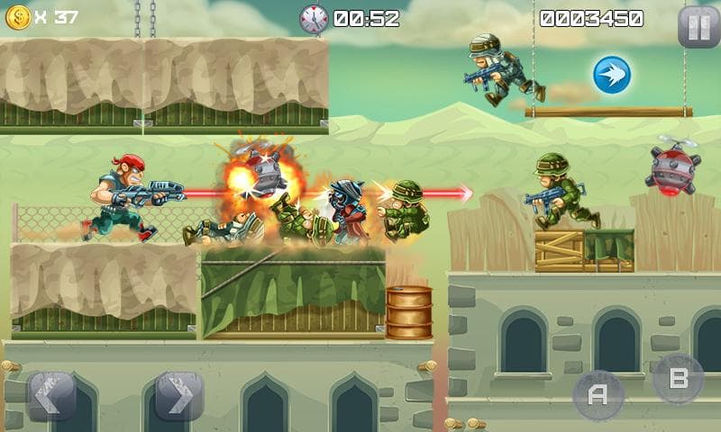 Metal Soldiers – Sĩ quan kim loại là một trò chơi đẹp và thú vị thuộc thể loại trò chơi hành động từ nhà phát triển Play365 dành cho hệ điều hành Android. Trò chơi này được phát hành miễn phí trên Google Play và hôm nay chúng tôi muốn giới thiệu nó đến bạn, những người yêu thích trò chơi nhỏ với lối chơi thú vị! Trò chơi này giống với trò chơi nổi tiếng Metal Slug, trong đó nhiệm vụ của bạn là tiêu diệt các sĩ quan khác và thu thập tiền để đạt được mục tiêu. Di chuyển trên bản đồ và bắn hạ mọi sĩ quan bạn gặp phải! Cách điều khiển trò chơi là sử dụng hai nút bên trái để di chuyển và hai nút bên phải để nhảy và bắn. Bằng cách sử dụng chúng, bạn có thể kiểm soát nhân vật trong trò chơi. Bằng cách kiếm tiền, bạn có thể mua nhân vật mới hoặc nâng cấp để làm cho trò chơi dễ dàng hơn. Vì vậy, nếu bạn cũng là người yêu thích trò chơi hành động, hãy không bỏ lỡ cơ hội và tải ngay trò chơi Metal Soldiers từ máy chủ nhanh Apkopia!