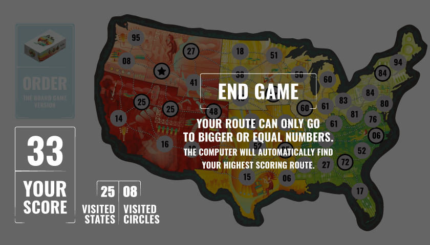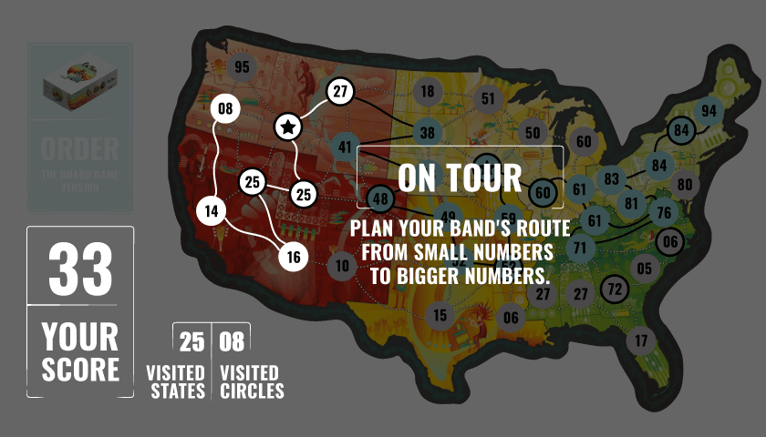 On Tour Board Game – Trò chơi bảng điều khiển On Tour là một trò chơi bảng được phát triển và phát hành bởi studio trò chơi boardgametables.com với giá 5.49 đô la cho các thiết bị Android. Trong trò chơi này, bạn sẽ đưa nhóm nhạc của mình lên đường và du lịch đến các tiểu bang khác nhau để tổ chức một chuyến lưu diễn tuyệt vời. Về mặt gameplay, trò chơi này không quá phức tạp và cơ chế của nó rất đơn giản. Cấu trúc của trò chơi được xây dựng theo kiểu “quẩy xúc xắc và viết”. Như tên gọi của nó, bạn cần tung xúc xắc và sử dụng các số mà vận may và số phận mang đến để đánh dấu các địa điểm khác nhau trên bản đồ của Hoa Kỳ và cố gắng kết nối tất cả các tiểu bang với nhau. Mục tiêu chính của bạn và nhóm nhạc trong trò chơi là nhận điểm và để có được số điểm cao nhất có thể, bạn cần đi du lịch đến các tiểu bang khác nhau càng nhiều càng tốt. Mỗi tiểu bang có một con số đặc biệt và duy nhất, và để đi từ một tiểu bang sang tiểu bang khác, bạn cần tuân theo các con số này theo cách giống nhau hoặc tăng dần. Ví dụ, nếu số của một tiểu bang là 4, số của tiểu bang tiếp theo phải là số 4 hoặc số lớn hơn 4 như 5, 7, 12 và… Ngoài ra, để trò chơi thêm hấp dẫn, nhà phát triển cũng sử dụng các yếu tố thẻ bài. Mỗi lượt chơi, 3 thẻ ngẫu nhiên từ một bộ thẻ sẽ được cung cấp cho mỗi người chơi, đại diện cho một phần của bản đồ, ví dụ: một thẻ bao gồm phần Nam bản đồ, một thẻ bao gồm phần Tây bản đồ và thẻ tiếp theo cũng bao gồm phần Tây bản đồ.