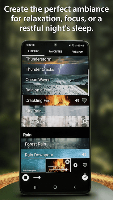 - Các âm thanh phong cảnh tuyệt đẹp để nâng cao trải nghiệm thư giãn của bạn.