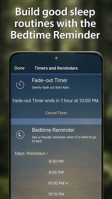 - Bộ hẹn giờ ngủ tùy chỉnh để giúp bạn dễ dàng đi vào giấc ngủ.