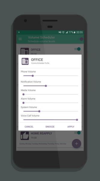 Volume Scheduler là một ứng dụng chuyên nghiệp và hữu ích trong việc tự động thay đổi âm lượng âm thanh trên Android được phát hành miễn phí bởi Yogesh Dama. Có nhiều lý do mà bạn muốn sử dụng ứng dụng này để kiểm soát âm lượng âm thanh thiết bị của mình! Trong suốt ngày và đêm, mọi người thường thay đổi âm lượng âm thanh của điện thoại thông minh của mình; ví dụ, họ đặt thiết bị của mình ở chế độ im lặng khi nghỉ ngơi hoặc trong các cuộc họp quan trọng, hoặc đặt nó ở mức tối đa khi ở ngoài. Ứng dụng thông minh này cho phép người dùng thân thiện tạo các hồ sơ khác nhau để tự động thay đổi âm lượng âm thanh của điện thoại thông minh trong các khoảng thời gian khác nhau! Chỉ cần chạy ứng dụng, tạo các hồ sơ riêng của bạn và giao toàn bộ việc cho Volume Scheduler! Có thể có các ứng dụng tương tự nhưng tất cả chúng đều có quyền truy cập không hợp pháp và nhiều cấu hình phức tạp, trong khi ứng dụng này lại có một giao diện đơn giản và cung cấp tất cả tính năng trong một môi trường thân thiện. Ứng dụng được chạy ở nền và tiếp tục hoạt động mà không gây phiền hà cho người dùng!